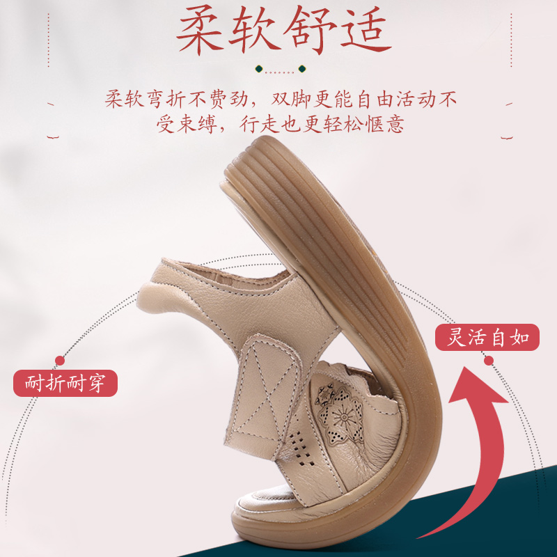 牛筋底女鞋 真皮软底妈妈凉鞋 中老年大码 镂空透气防滑奶奶鞋 女夏季