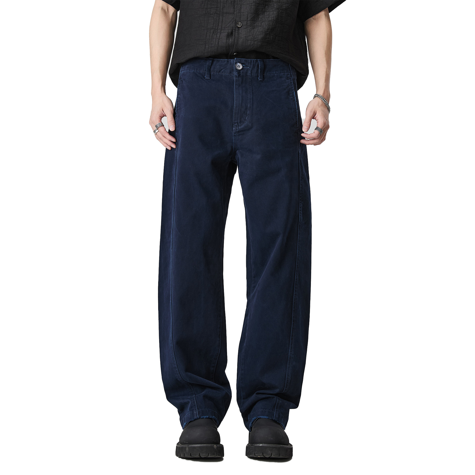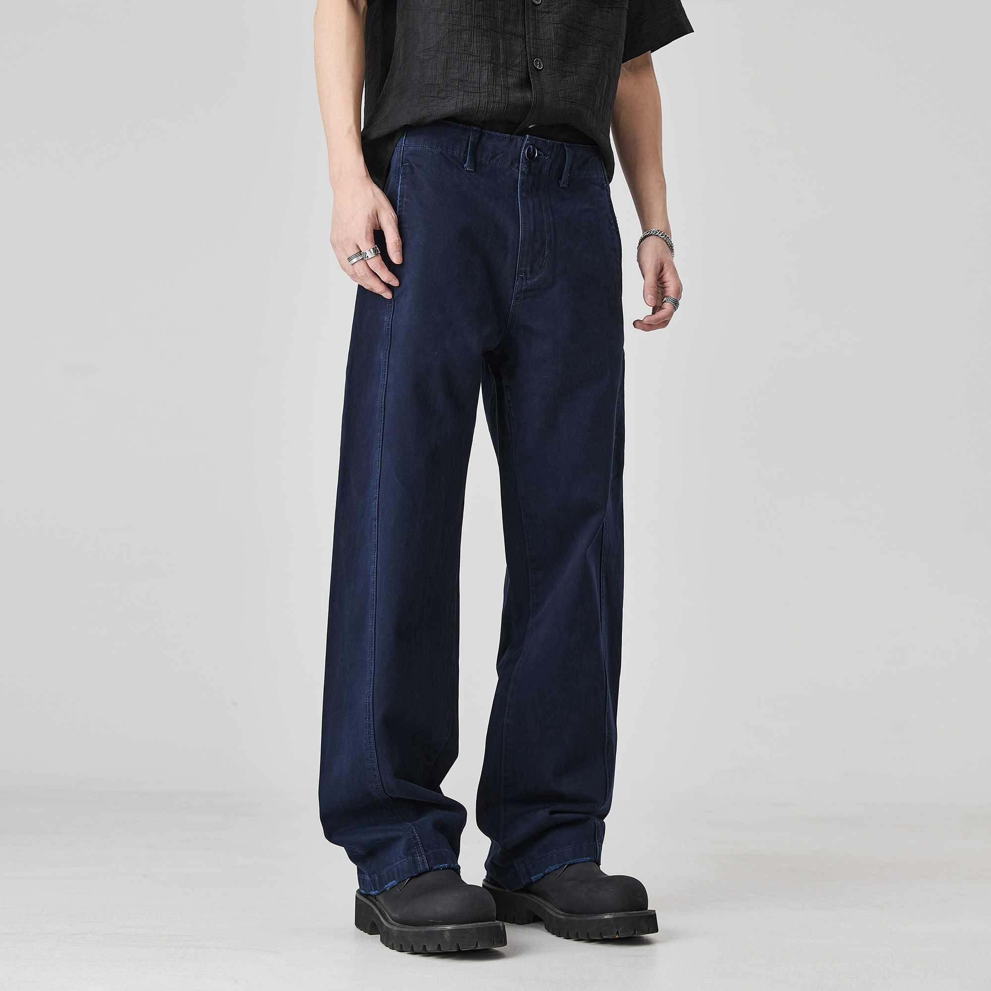 高街宽松阔腿cleanfit弯刀裤 ALLIN 男夏季 深蓝色直筒牛仔裤 子 美式