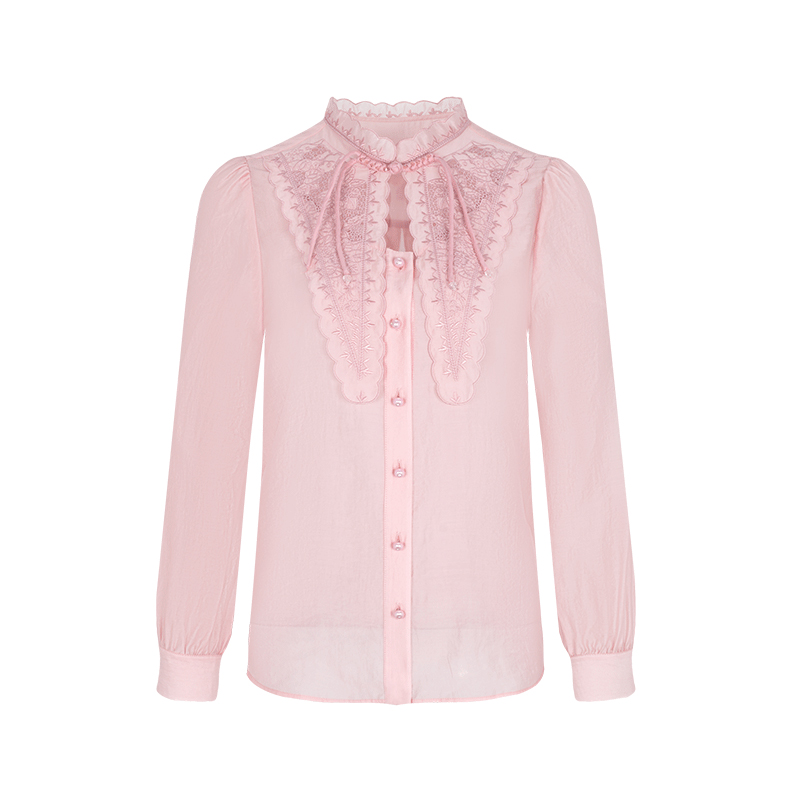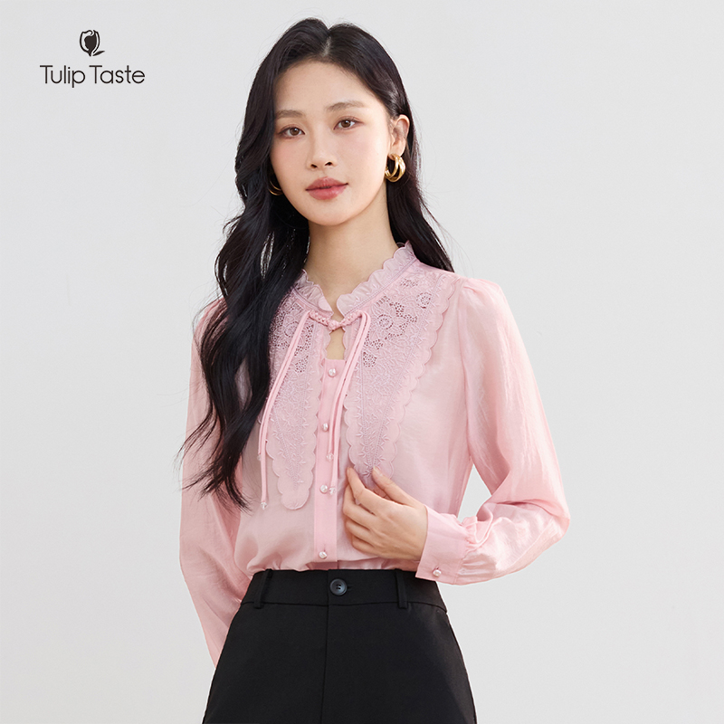 气质花边领单排扣莱赛尔上衣 时尚 郁香菲绣花领衬衫 女优雅通勤秋季