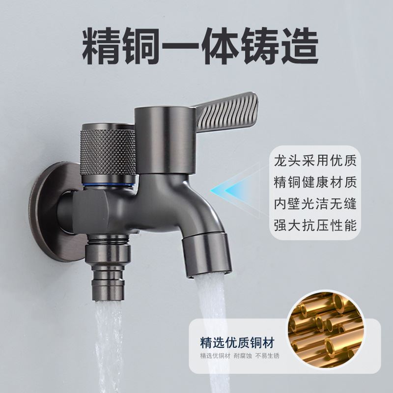 枪灰色全铜洗衣机水龙头家用4分拖把池水嘴龙头普通入墙加长龙头