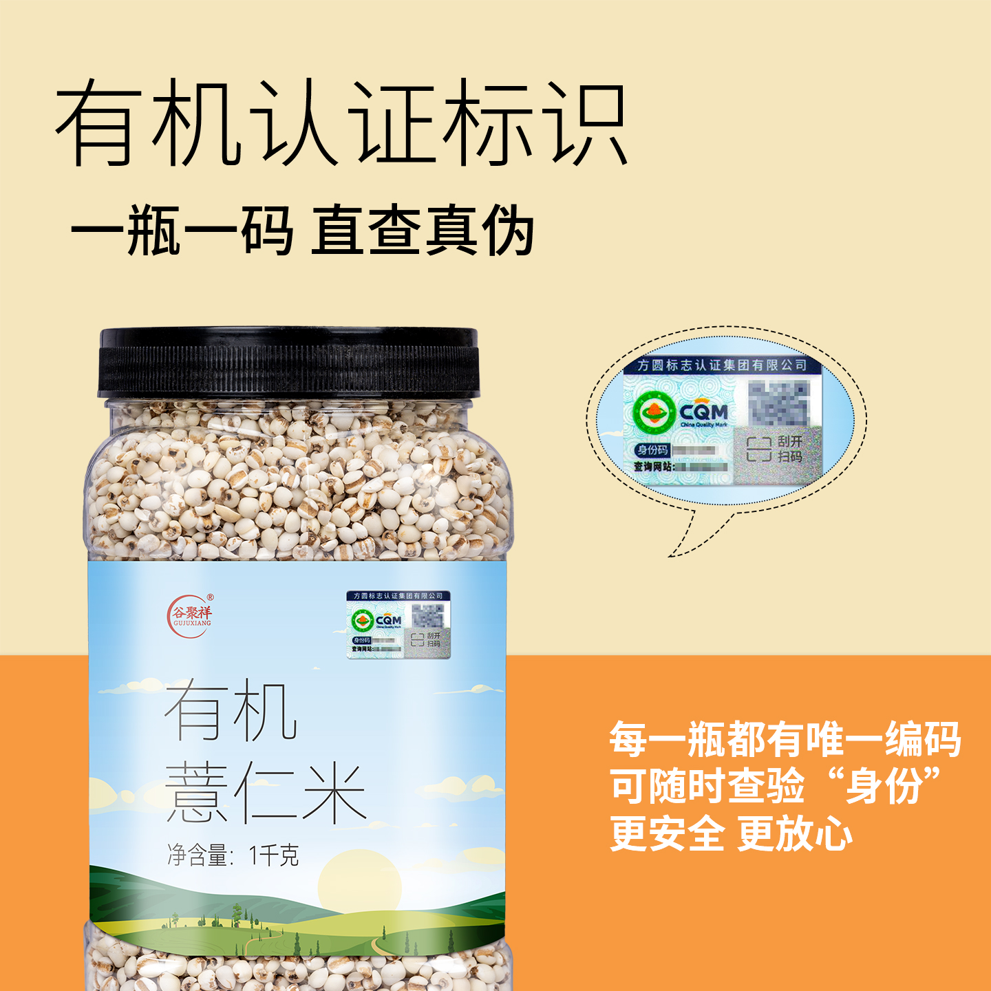 谷聚祥有机薏仁米罐装 新货农家自种薏苡仁粥五谷杂粮煮粥软糯1kg
