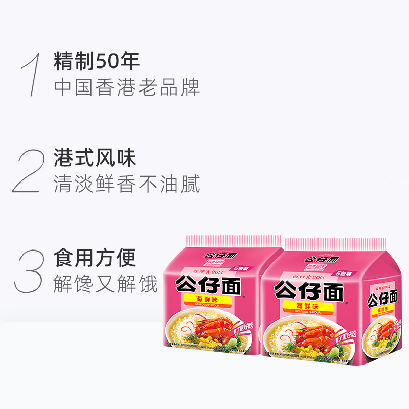公仔面方便面速食泡面煮面五连包海鲜味组拉面火锅面捞面