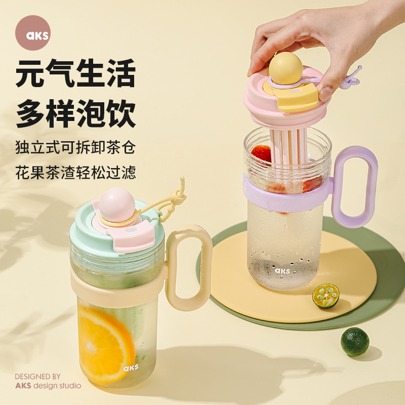 aks2025新款 女夏天tritan吸管水杯便携大容量茶水分离高颜值杯子
