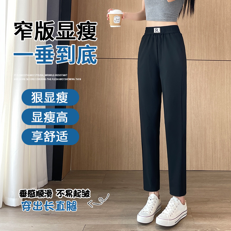 2025新款 薄款 爆款 高腰显瘦大码 子 冰丝哈伦裤 女士休闲直筒裤 女夏季