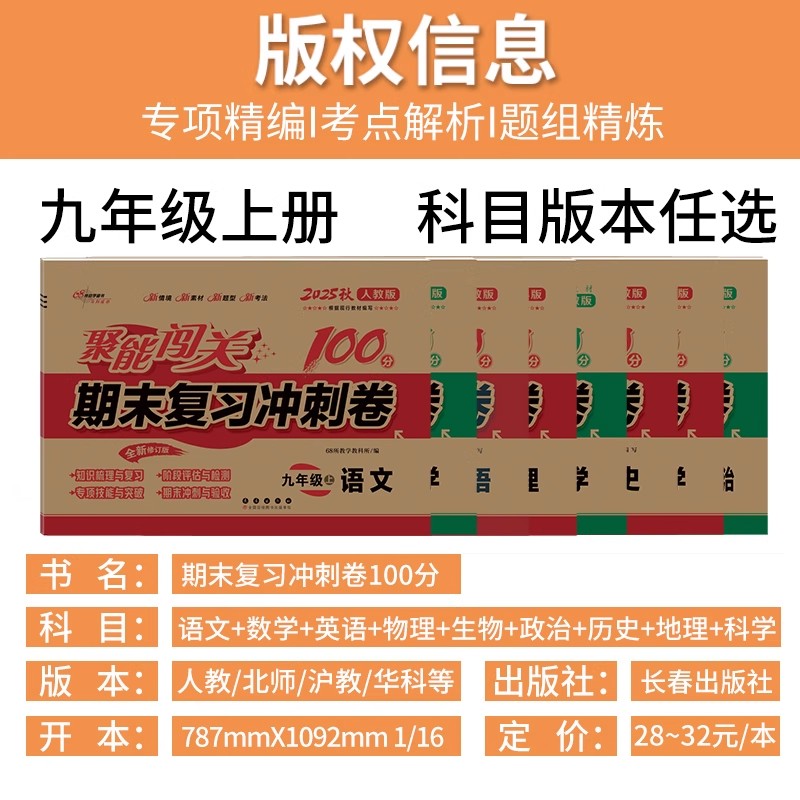 2025秋初中聚能闯关期末复习冲刺卷100分七年级八九年级上下册数学物理化学生物语文英语政治历史地理人教版 测试 初一二三同步单元