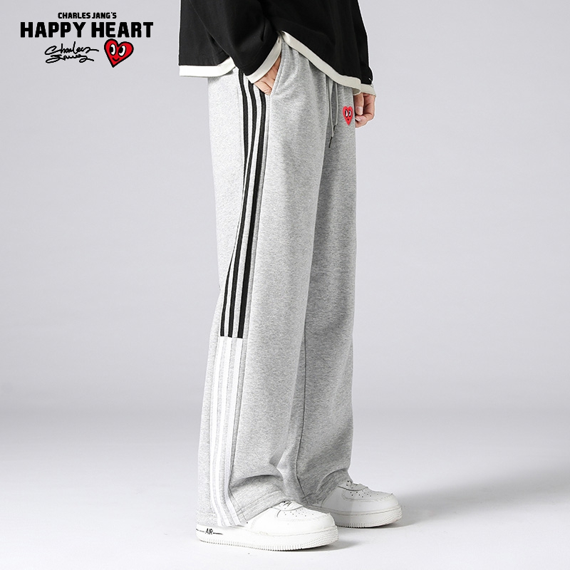情侣裤 男直筒宽松薄款 2025年春夏拼接三条杠休闲长裤 查尔斯桃心