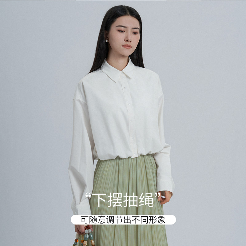 洋气长袖 宽松休闲百搭时尚 上衣 2025秋季 宝诗黎假两件条纹拼接衬衫