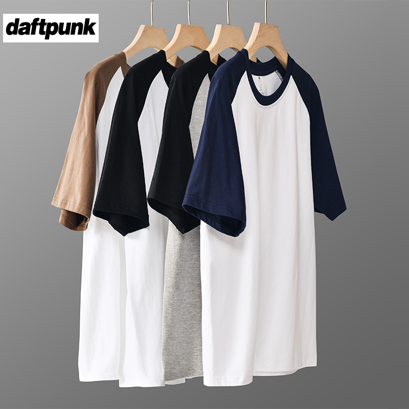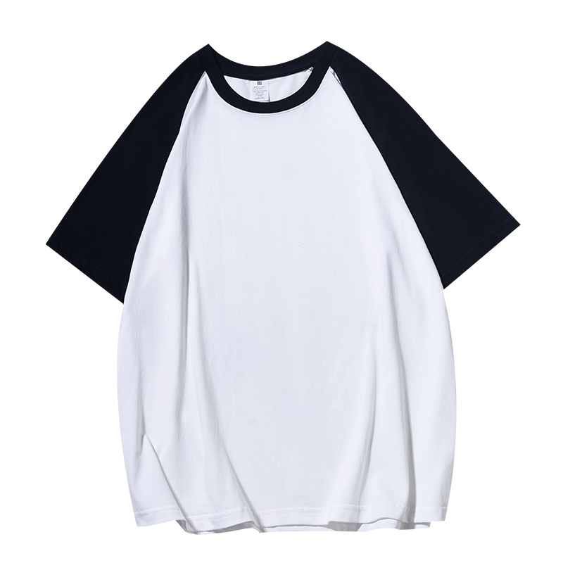 正肩拼接情侣半袖 撞色设计感短袖 高街潮潮插肩袖 美式 女 t恤男夏季