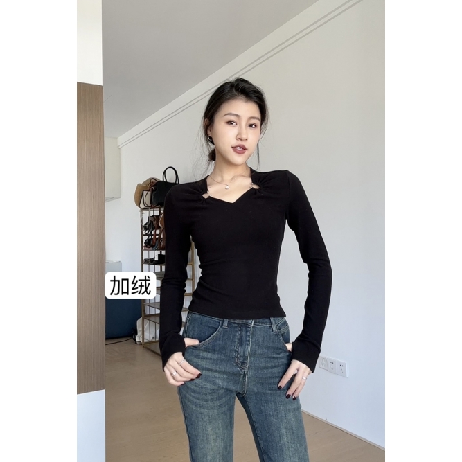 显瘦内搭长袖 张阿星 V领气质百搭修身 2023秋冬款 上衣 显瘦密码