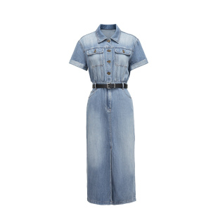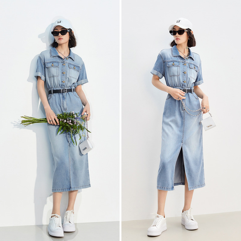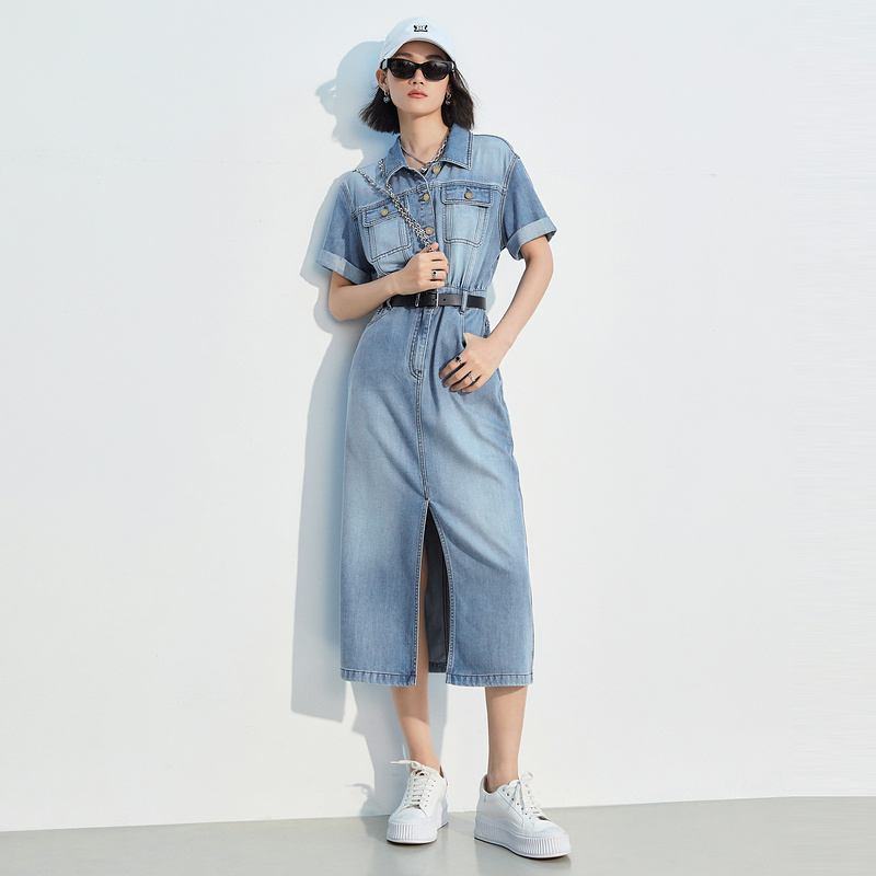 领衬衫 佐丹奴裙子女夏季 西装 莱赛尔绑带中袖 连衣裙女05465079 新款