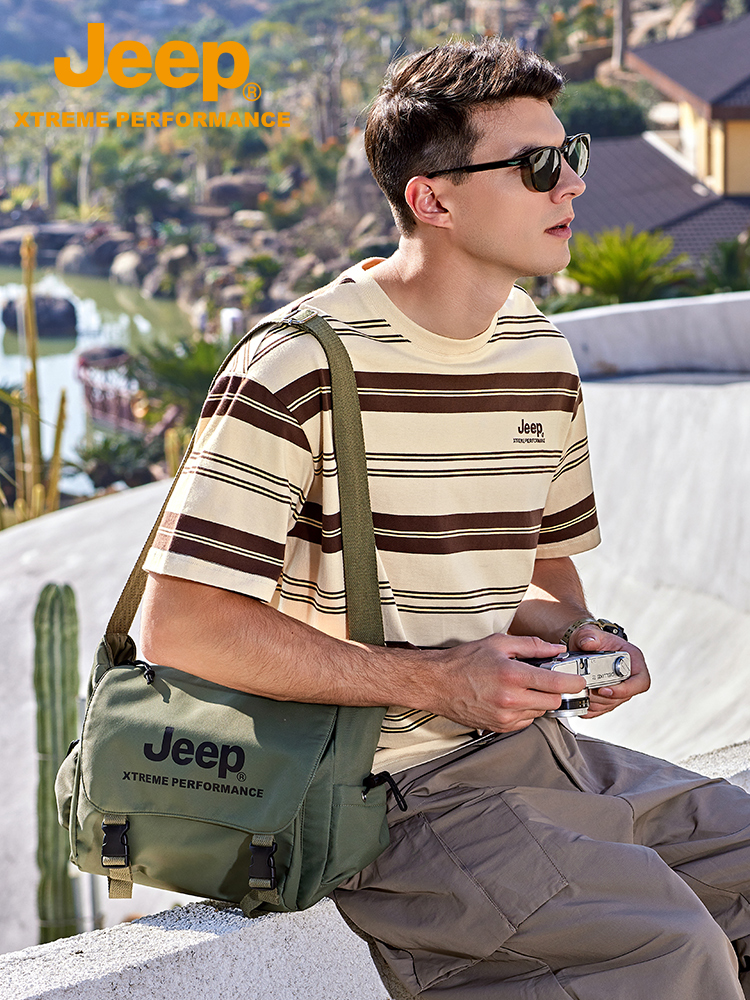 Jeep吉普轻薄T恤男户外纯棉圆领休闲衣夏官方透气情侣条纹短袖 女