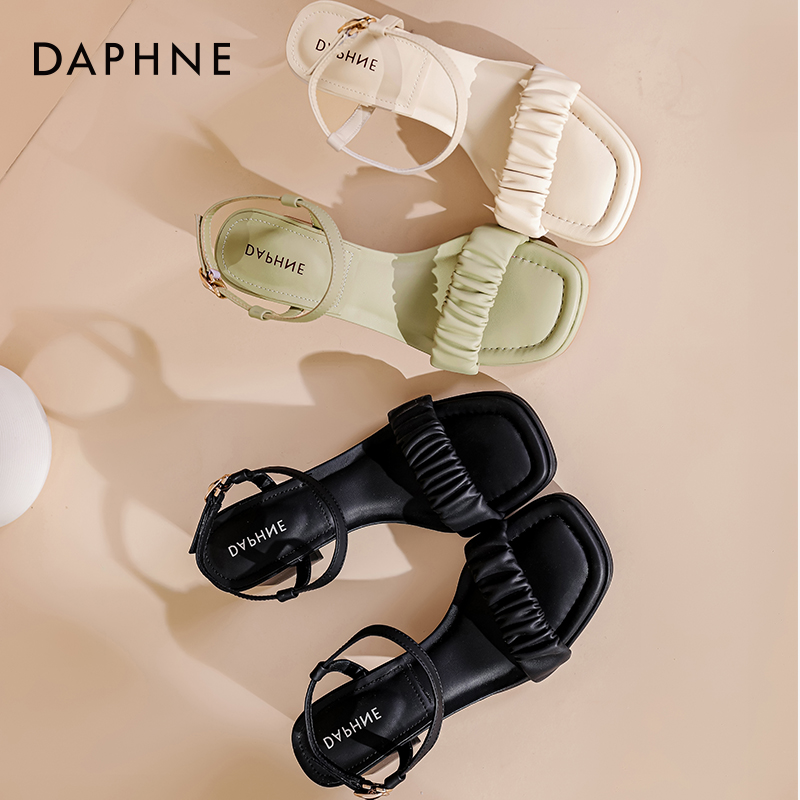 女款 气质通勤高跟鞋 夏季 外穿一字带粗跟凉鞋 女 2025新款 达芙妮凉鞋