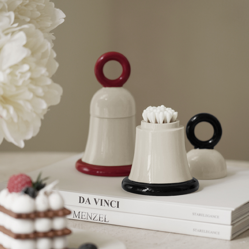 纳茉 铃铛系列陶瓷牙签棉签罐牙线收纳盒创意客厅茶几桌面摆件