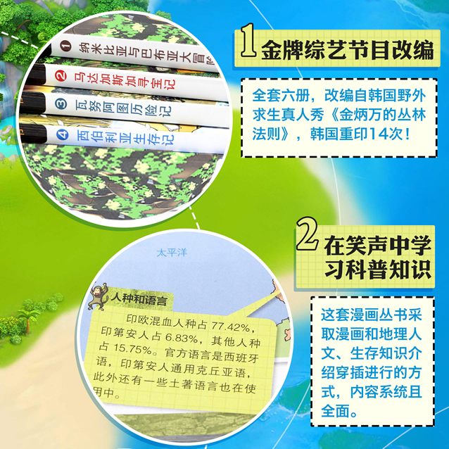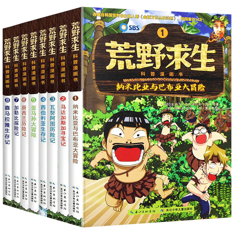 野外求生技能手册绘本 12岁三四五六年级小学生课外阅读书籍幽默故事冒险探险书 丛林法则改编漫画版 荒野求生科普漫画书全套8册
