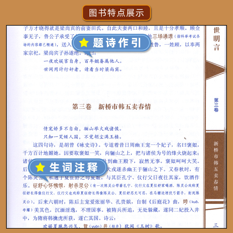 书籍古文高中学生诵读本青少年鉴赏辞典带翻译名篇无障碍阅读中国古典名著原文 国学经典 喻世明言线装 中华国粹冯梦龙原著原版