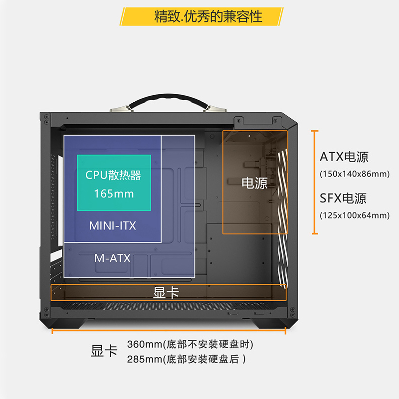 未知玩家X200手提式 C电脑主机箱 MATX紧凑型240水冷ITX侧透TYPE