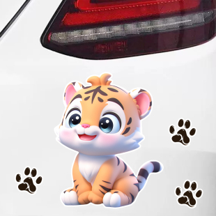饰电动车贴纸 车贴划痕遮挡防水装 YJZT 呆萌微笑老虎创意个性