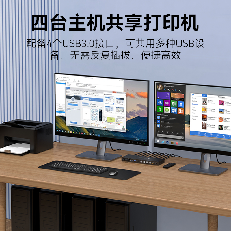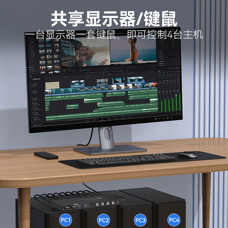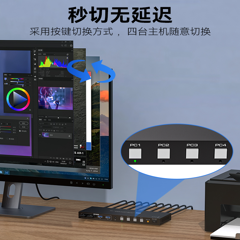 Vpfet DP8K60HZ高清四进一出4口一套鼠标键盘控制四台电脑主机共用一个显示器USB打印机共享器 kvm切换器HDMI
