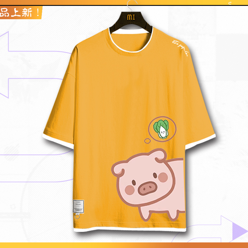 纯棉潮流搞怪t恤刺绣短袖 男女情侣装 新款 小猪和白菜卡通夏季