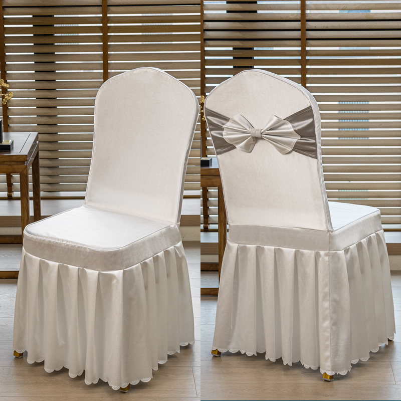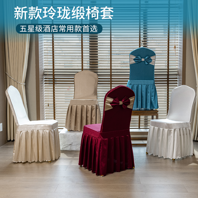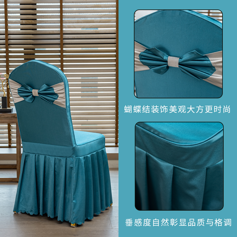 定制酒店椅套顺褶群蝴蝶结椅子套饭店餐厅宴会凳子套罩缎面亮面