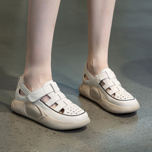 包头罗马凉鞋 拼色休闲小白鞋 头层牛皮厚底女轻便舒适防滑女鞋 夏季