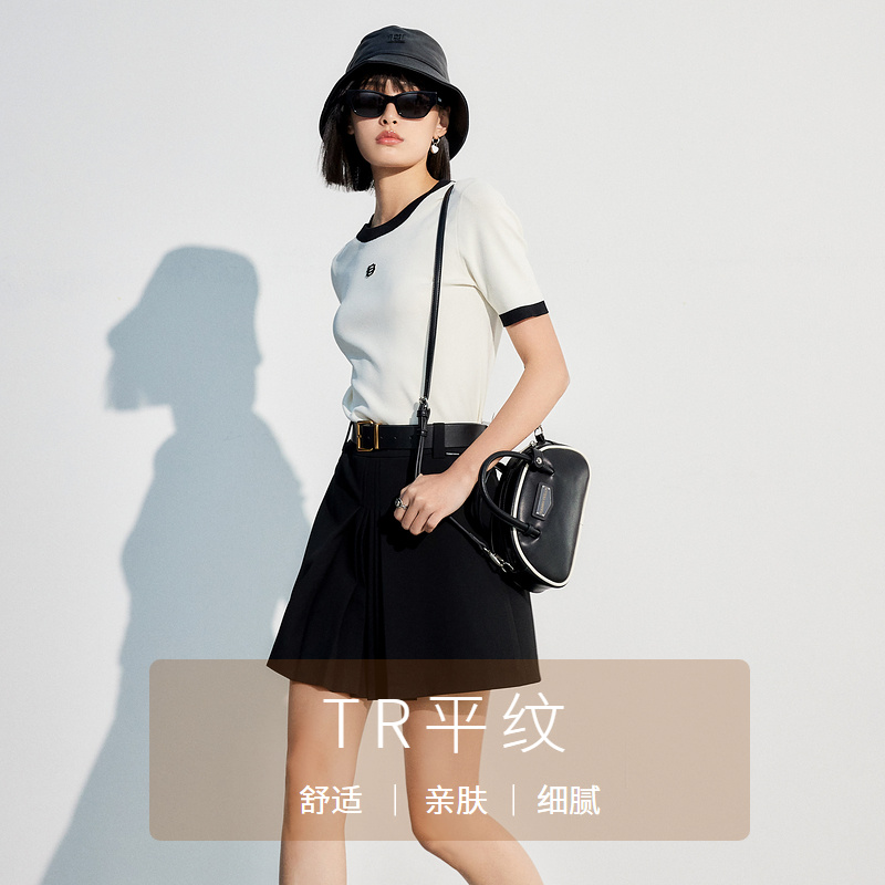 简约中长款 她池松紧腰百褶裙2025秋装 时尚 女装 A字高腰半身裙 新款