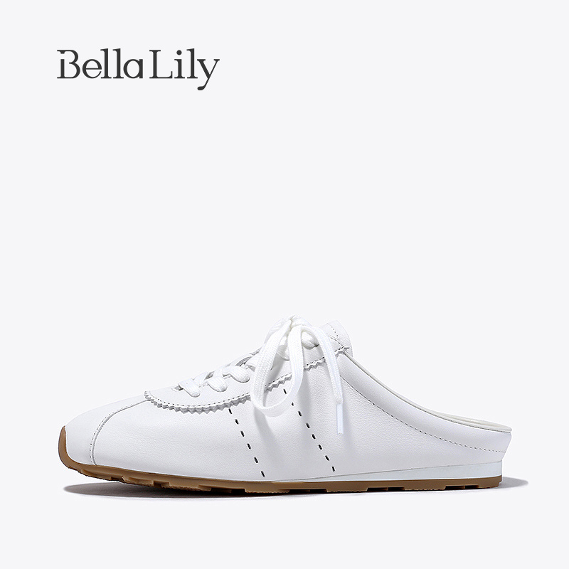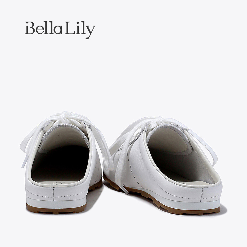 一脚蹬平底鞋 女无后跟小白鞋 懒人半包拖鞋 BellaLily新款