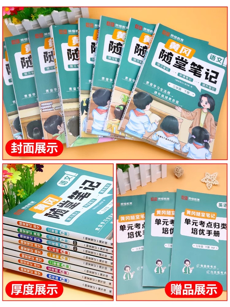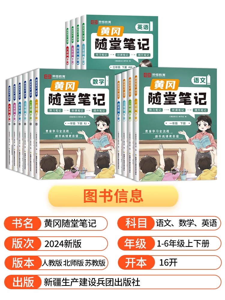 语文数学英语全套教材一二年级三年级下册四五六年级下小学课堂练习学霸黄岗上册新版 2024黄冈随堂笔记人教版 复习预习书 荣恒