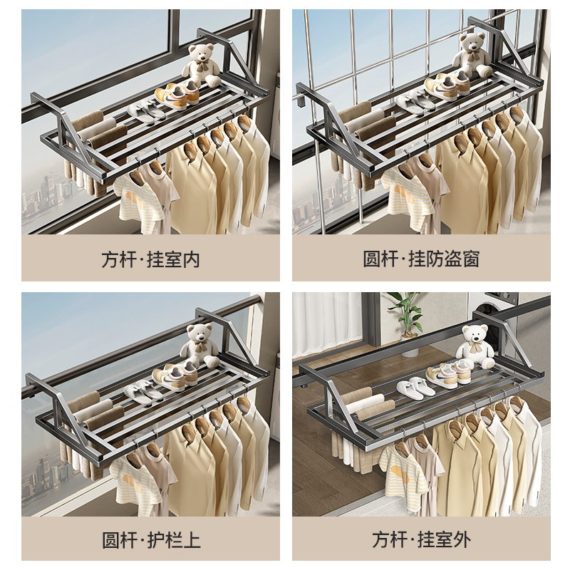 阳台外晾衣架晒衣置物架防盗窗护栏窗外晒鞋 神器家用窗台室外晾晒