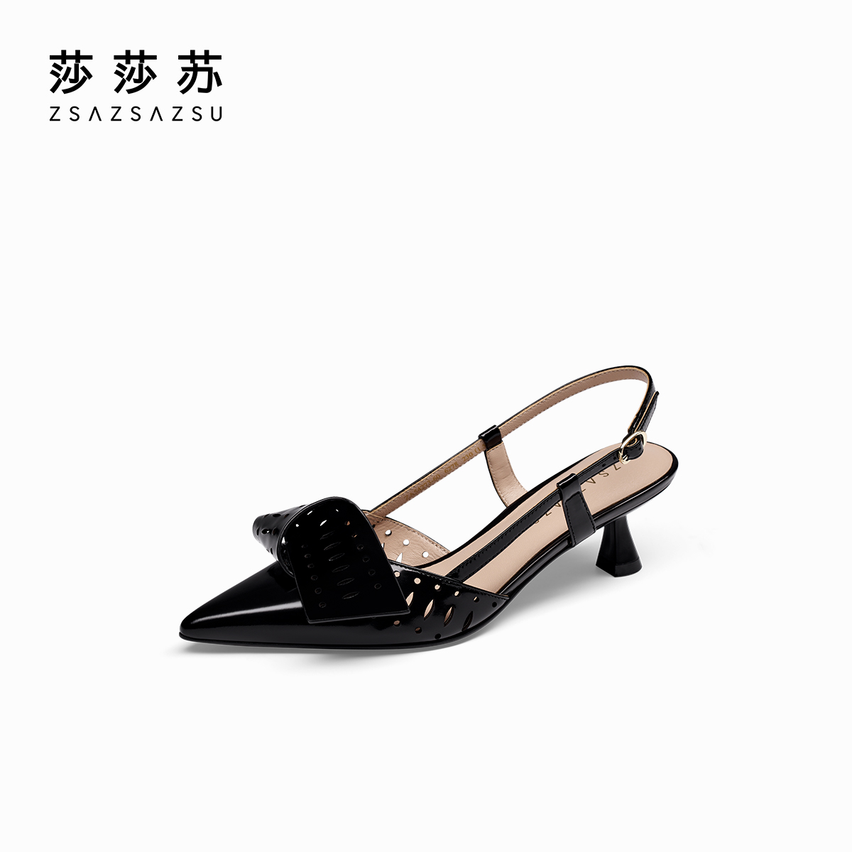 温柔晚晚风后空凉鞋 尖头细跟高跟鞋 莎莎苏春夏新款 女 甜蜜交织