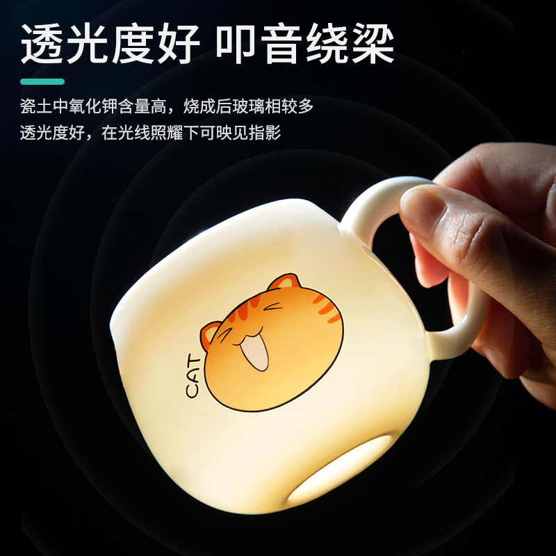 言仓线条小狗泡茶分离杯带滤托陶瓷水杯办公室茶杯生日礼物