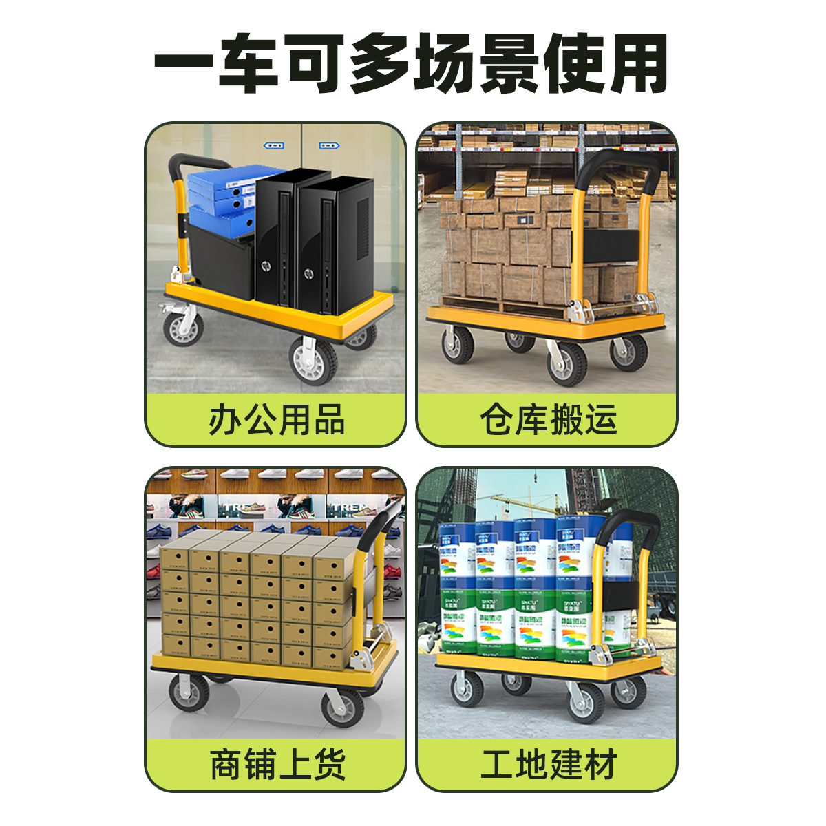 小推车平板车拉货拖车搬运车便携折叠四轮静音手推车家用快递拉车