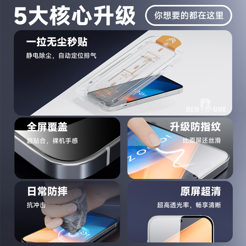 适用于vivoiQOOZ6钢化膜无尘仓防指纹手机膜iQOOZ6X高清抗蓝光玻璃保护膜vivo新款 全屏覆盖自动除尘贴膜神器