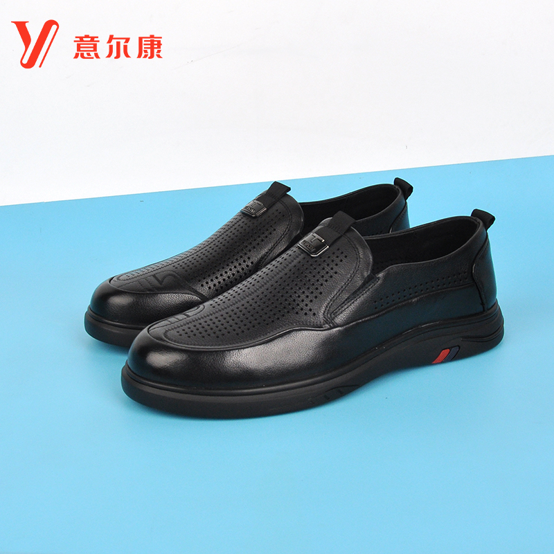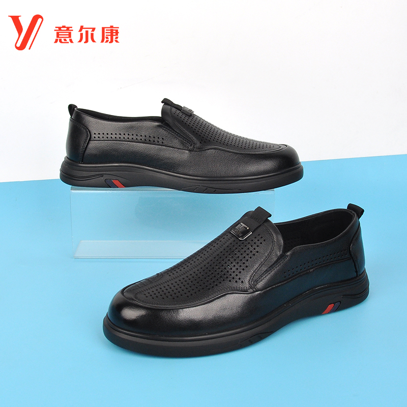 父亲中年爸爸鞋 男士 子软底一脚蹬 真皮商务休闲透气皮鞋 意尔康男鞋