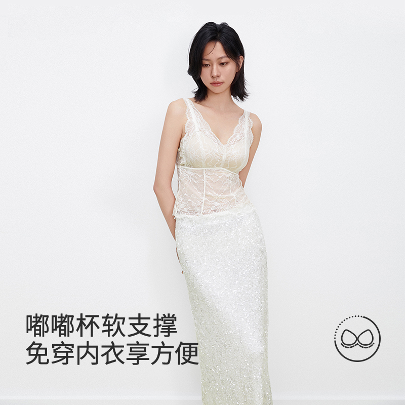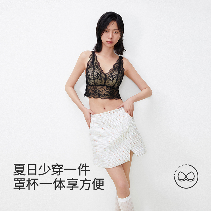 音儿内衣 蕾丝打底背心女带胸垫美背文胸一体内搭 花影纤纤腰