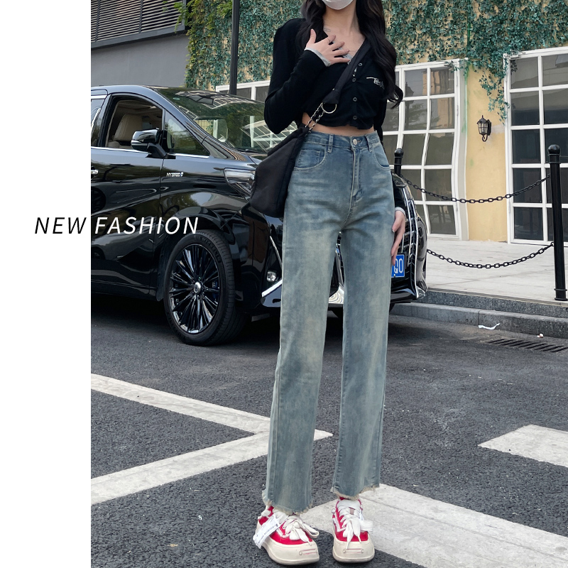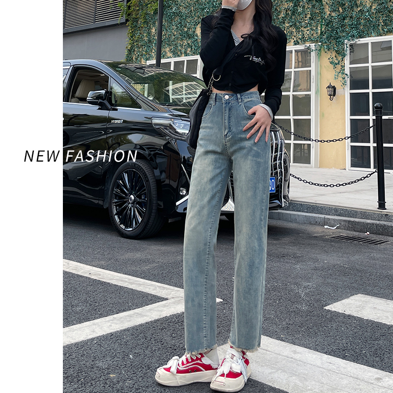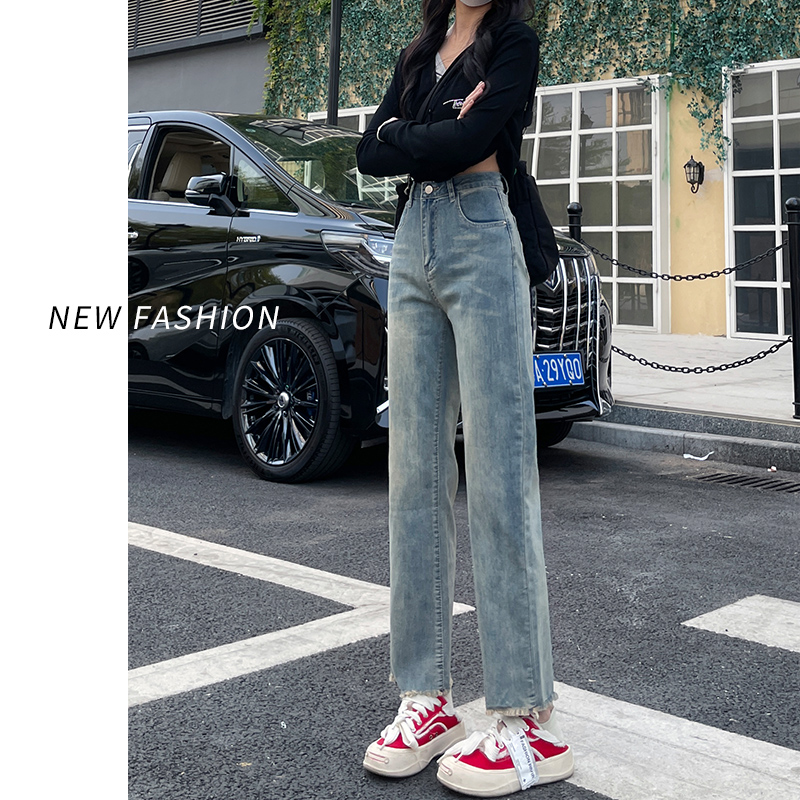 子夏季 美式 复古宽松显瘦直筒裤 女春秋2025新款 高街豹纹阔腿牛仔裤