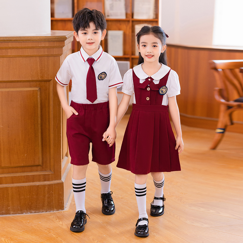 小学生班服幼儿园园服夏季 儿童朗诵合唱比赛演出服红 校服女童套装