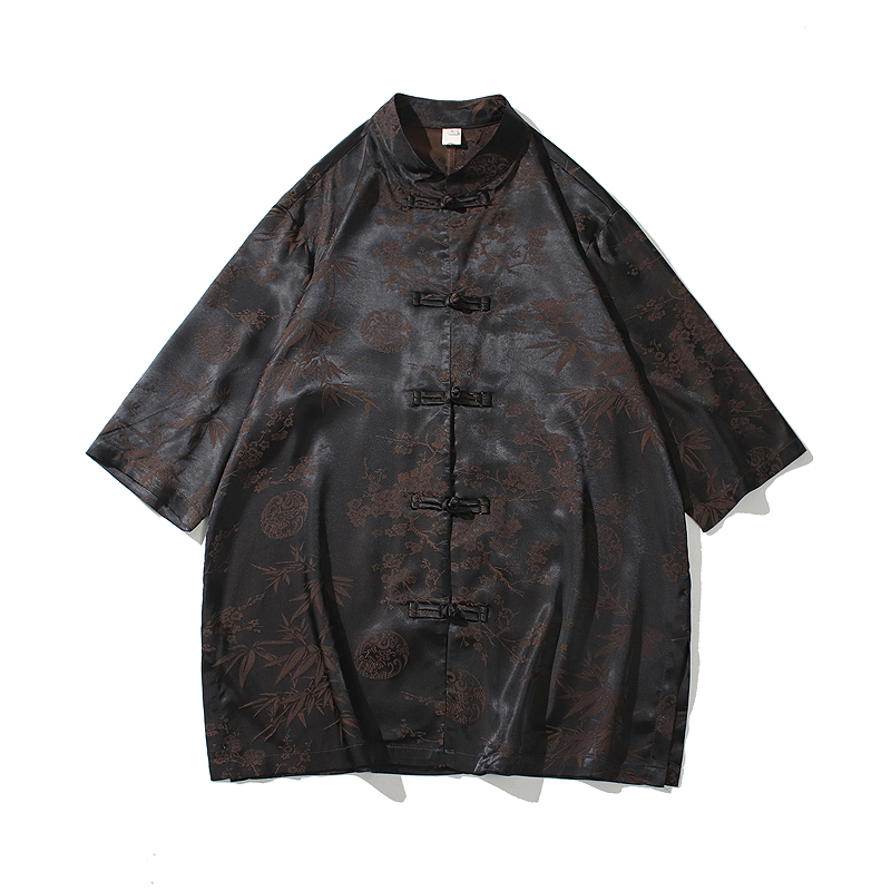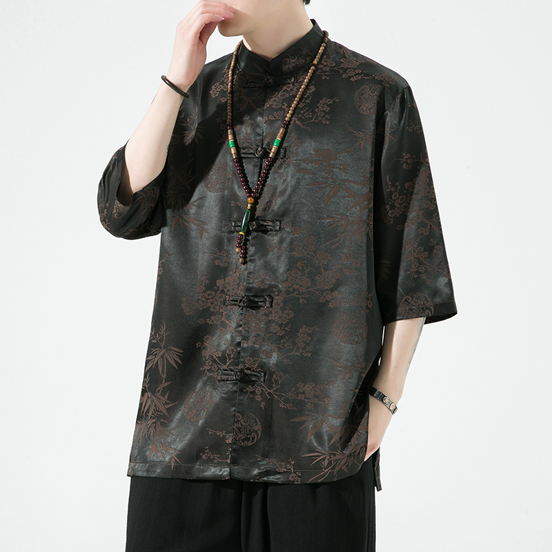 冰丝衬衫 中老年 夏季 中国风爷爷装 服装 男古装 短袖 短款 男士 男款 唐装