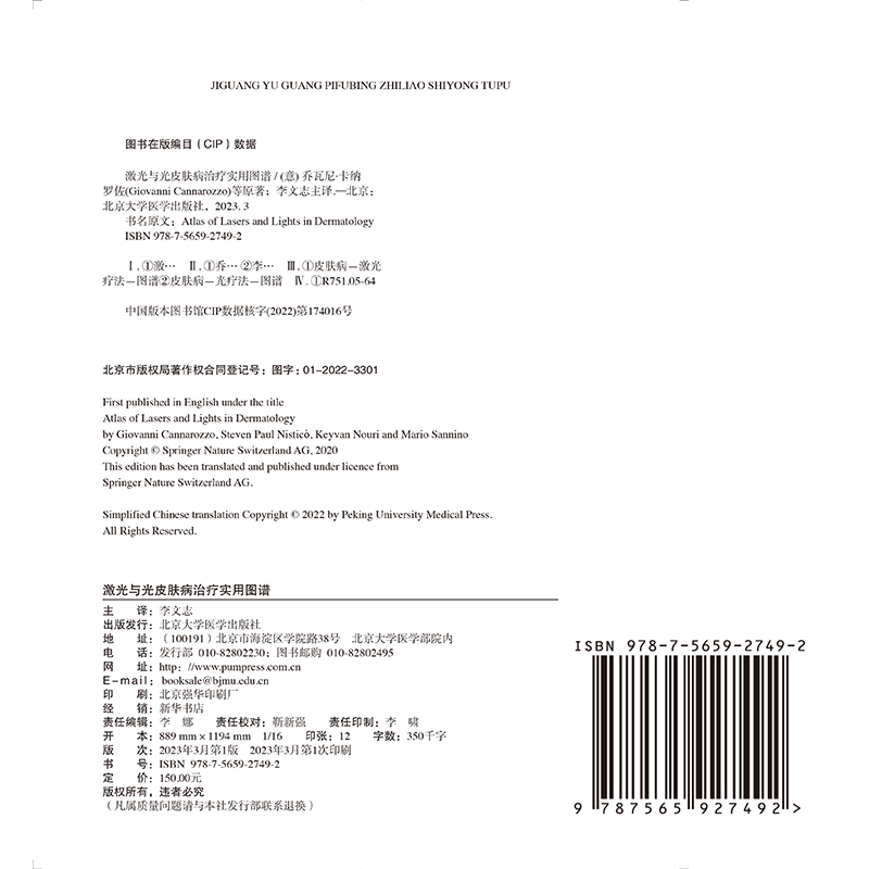 李文志北京大学医学出版 现货 应用 激光联合治疗日光性角化病激光在罕见皮肤疾病中 社9787565927492 激光与光皮肤病治疗实用图谱