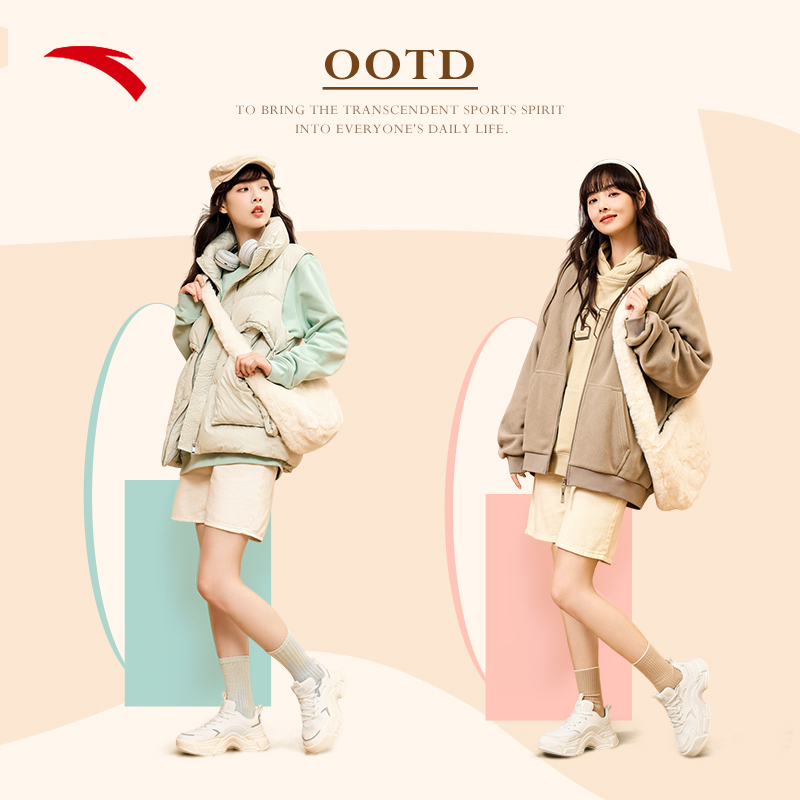 增高厚底不累脚休闲鞋 潮流运动鞋 女鞋 复古小白鞋 秋季 安踏小千禧