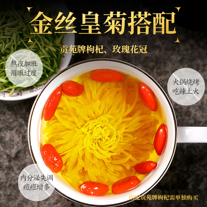 贡苑金丝皇菊菊花茶超大朵贡菊黄山清热去下火茶泡水喝官方旗舰店