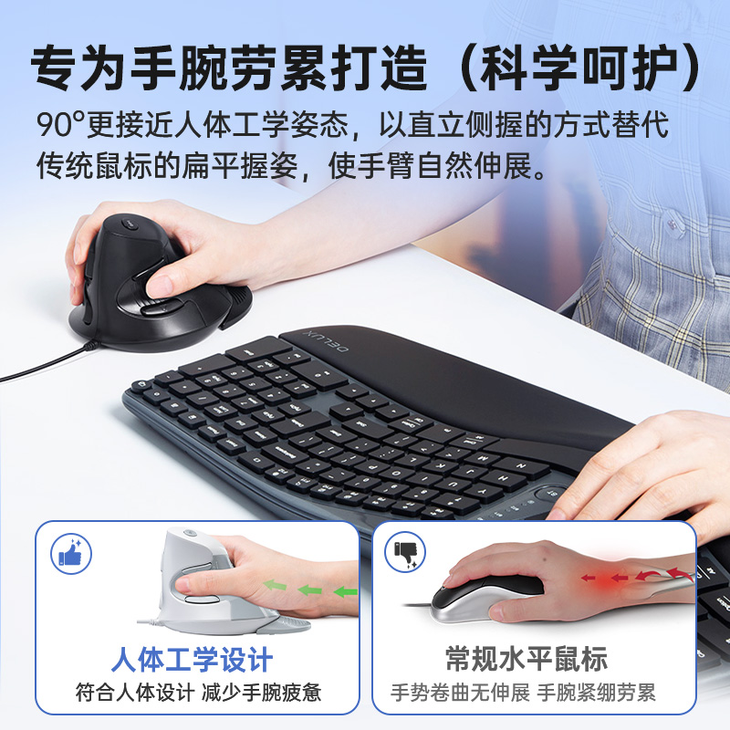 多彩M618人体工学垂直鼠标无线静音蓝牙双模办公有线预防鼠标手