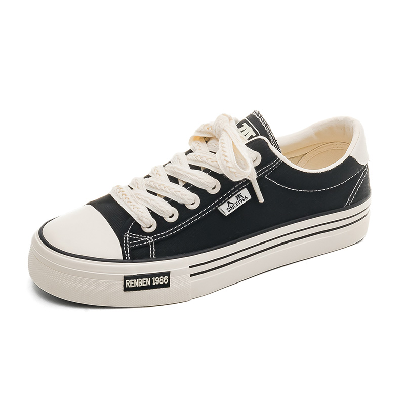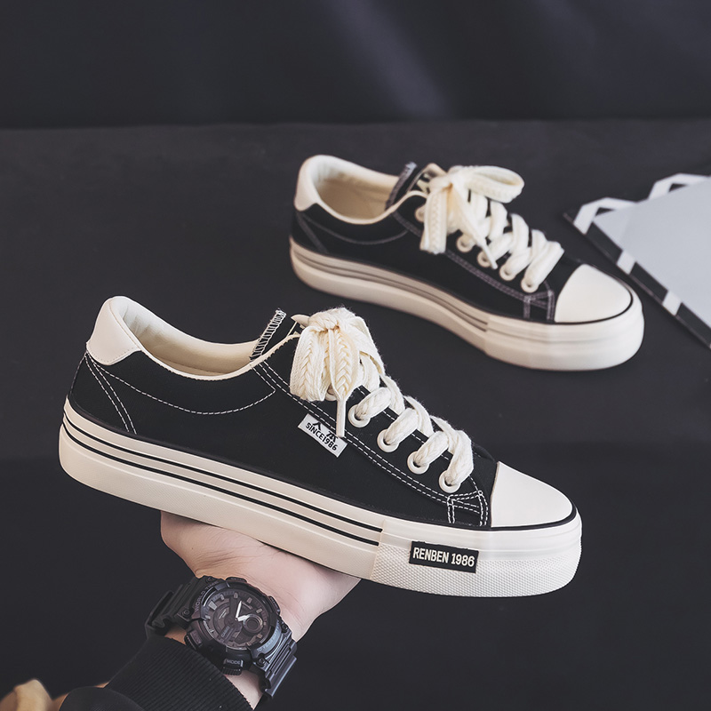 男大童学生百搭透气小白鞋 米色休闲板鞋 子 男低帮情侣款 人本帆布鞋