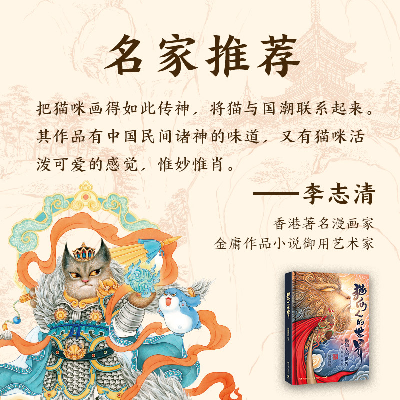宣纸画 插画中国画畅销画册 传统文化 仙猫狸将 亲签 卡贴 八仙九猫首部作品 书签 拉页 猫咪 猫仙人 全彩印刷大开本平铺 世界