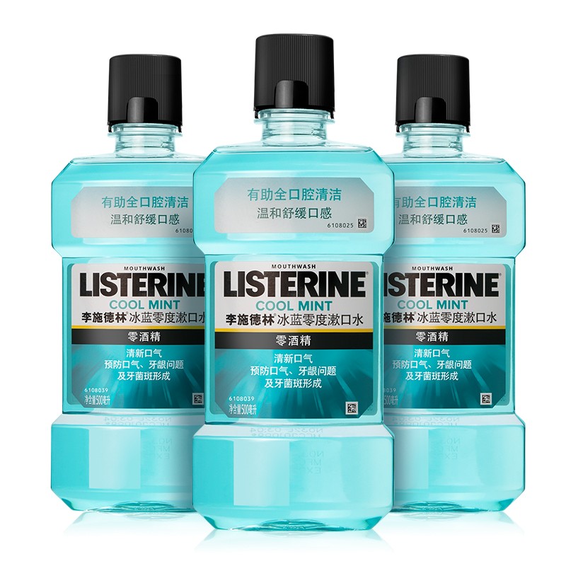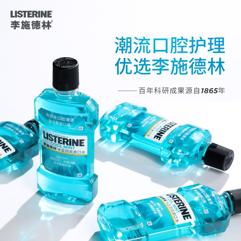漱口水李施德林冰蓝劲爽500ml清晰口气簌涑口水清晰口气官方正品
