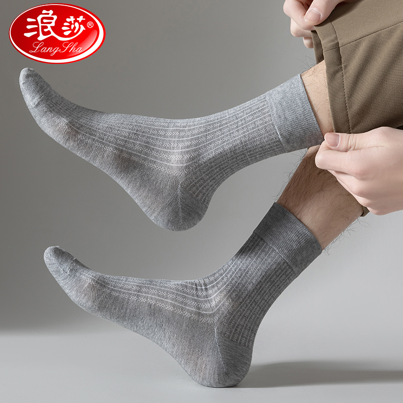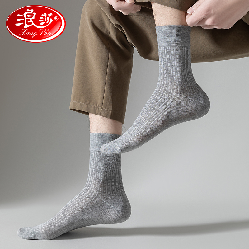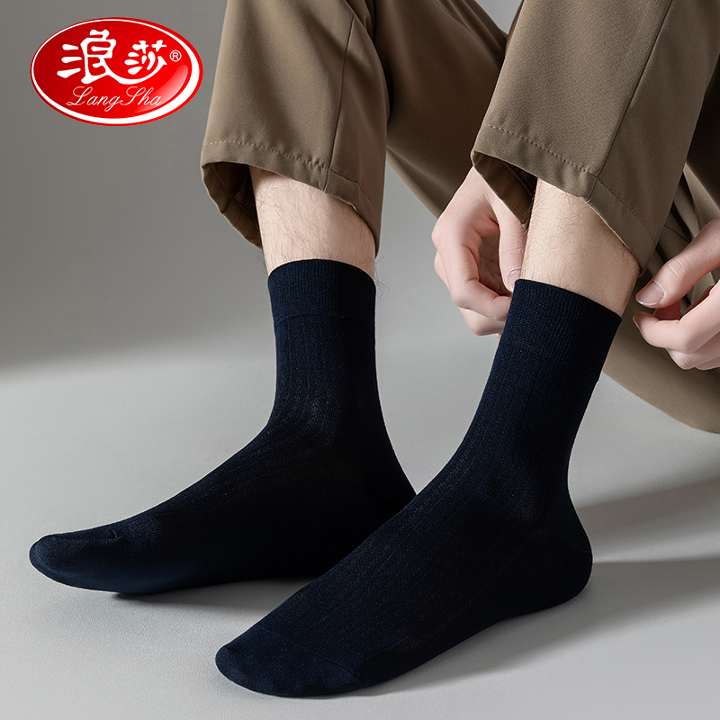 中筒青少年运动袜秋冬全棉袜男士 浪莎袜子男款 纯棉防臭吸汗春秋季