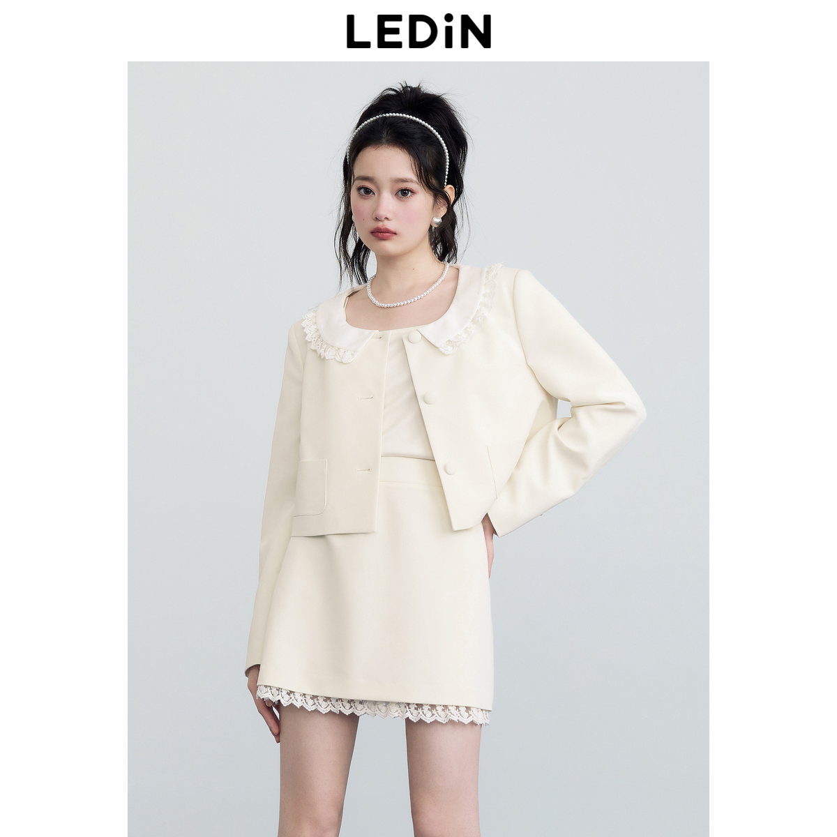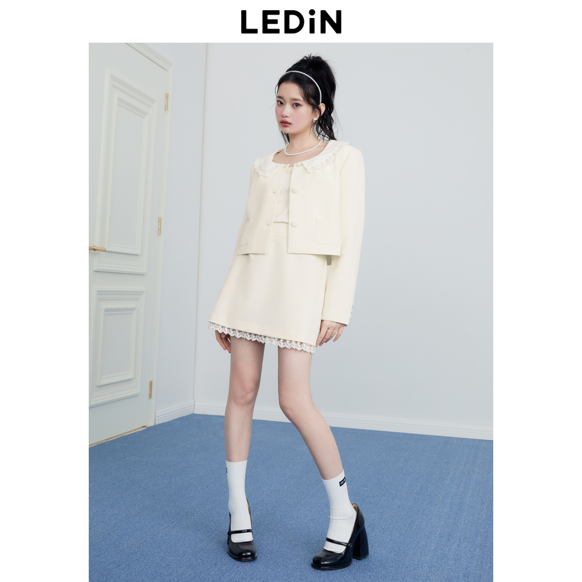 女蕾丝短裙套装 新款 乐町甜美花边外套秋季 白色乖巧 清仓