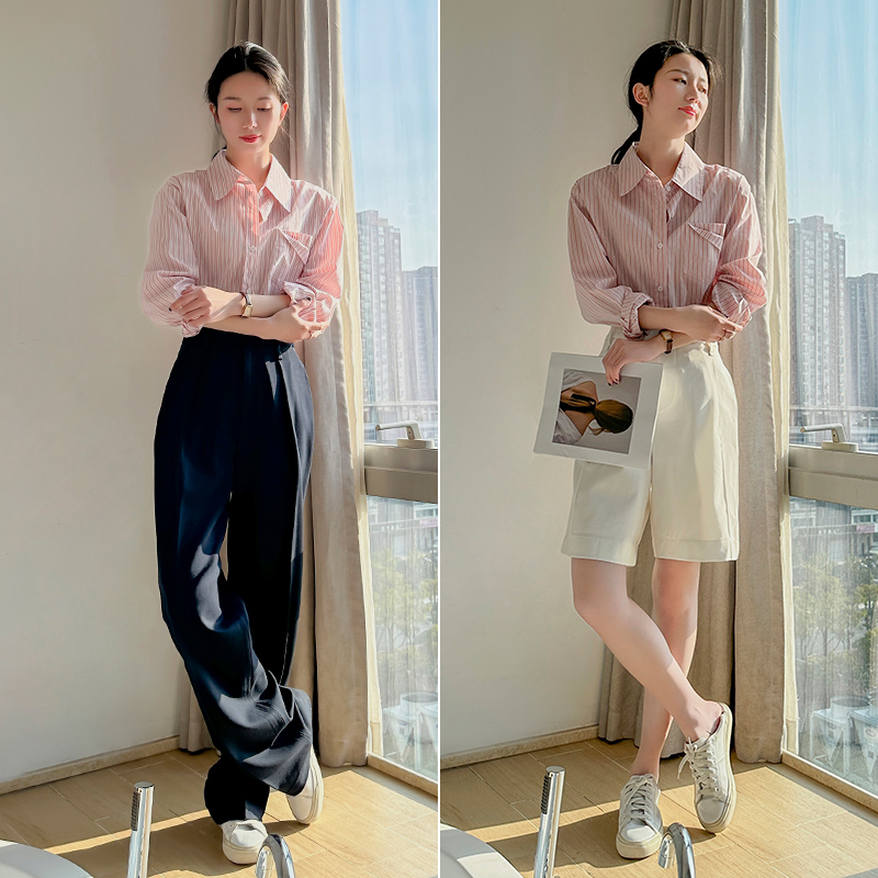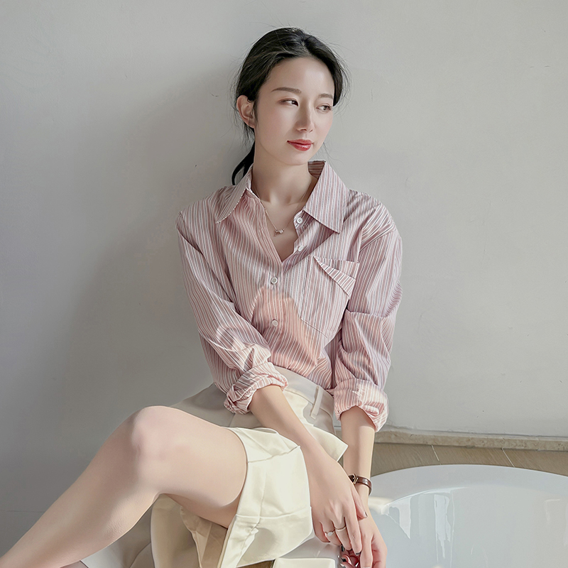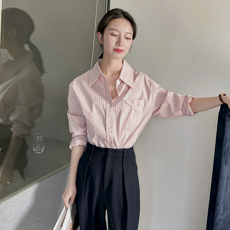 玫粉色上衣纯棉高级感开衫 外套长袖 慵懒风外搭 树莓色衬衫 2025秋季