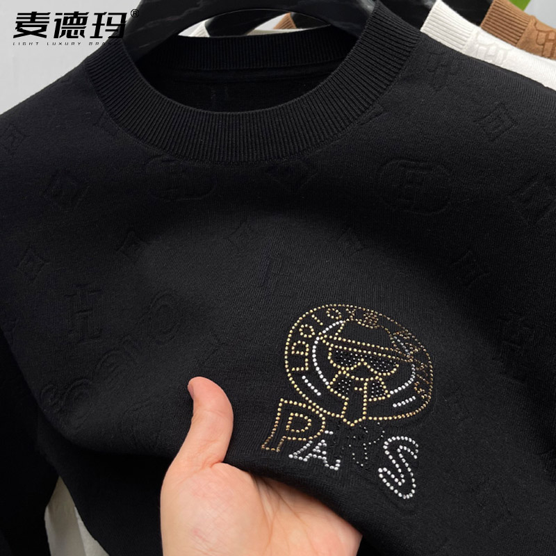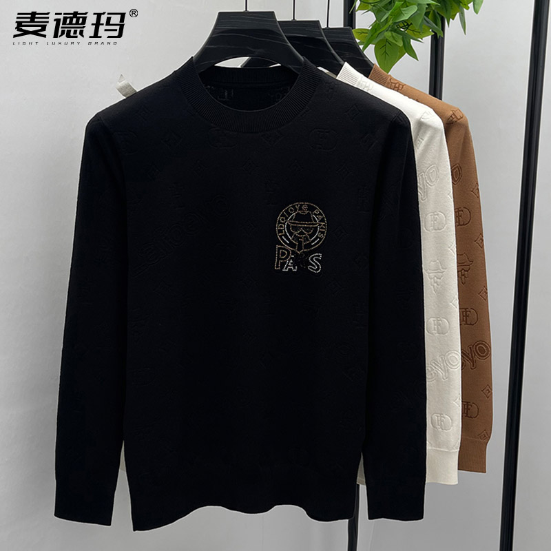 提花中领潮流长袖 内搭百搭针织打底衫 毛衣半高领秋春秋修身 男士