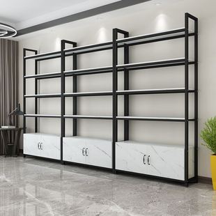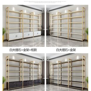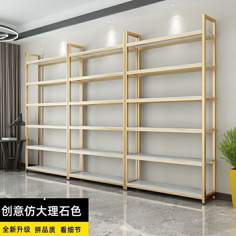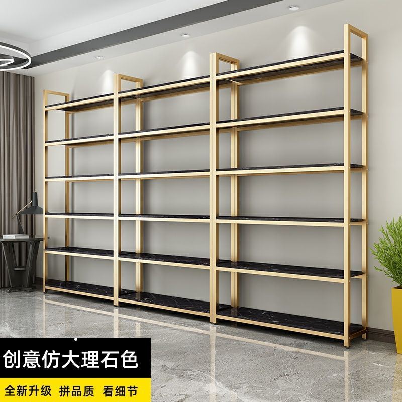 北欧金色大理石书架置物架办公室落地收纳架储物架美甲货架展示架
